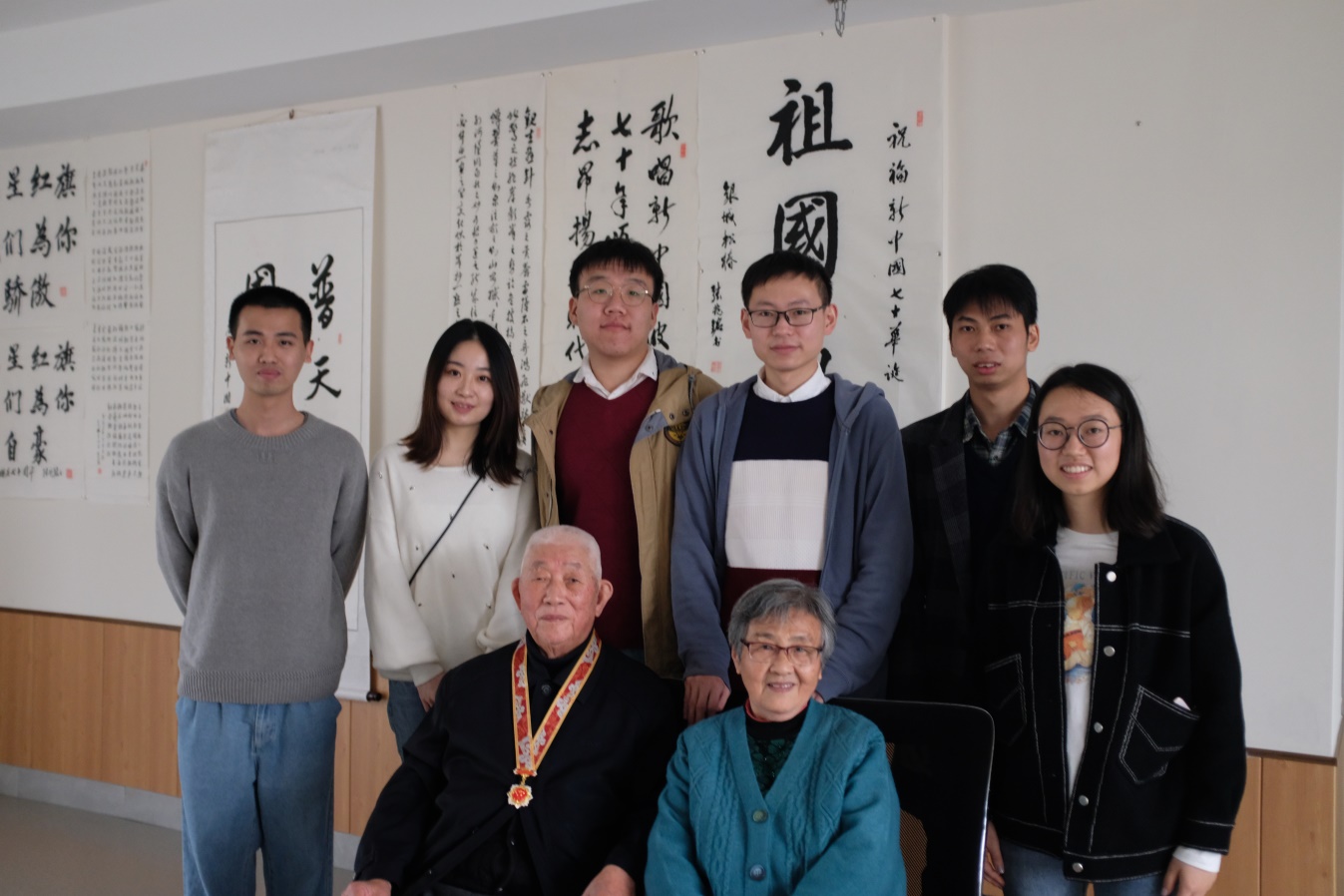 为庆祝新中国成立70周年,响应党中央开展第二批"不忘初心,牢记使命"主题教育活动号召,深入学习贯彻胡金波书记在伟德国际1949始于英国"不忘初心、牢记使命"主题教育动员大会上的重要讲话精神,11月17日,伟德1949官网2018级中国史硕士生党支部前往养老院,拜访了荣获中共中央国务院、中央军委颁发的"庆祝中华人民共和国成立七十周年纪念章"的姜平教授。