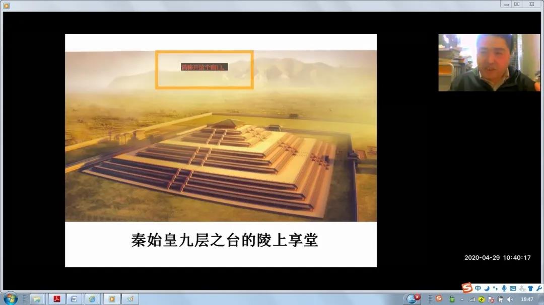 另外说一个正式的,就是这个直播上课对老师的要求,当然很高,这个对老师的提升,当然也是一个很好的契机,尽管这个疫情不好,但确实是对老师的PPT的要求也更高了,特别我们考古用的图片,用的实物资料的照片,扫描的图片的要求也更高了,还是因为不知道因为是你的原因呢,还是因为学校的这个设备的原因,但现在这个共享屏幕你所看到的就是员工所看到的,所以对老师制作PPT,对老师这个课件的质量,对这个考古文物图片考古材料的这些扫描的图片照片要求就更高,所以要求要PPT要清晰明了,这个要求要高了。