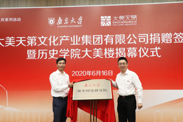 鲍风林员工在致辞中追忆了在南大求学的时光,母校诚朴勤奋、追求卓越的治学,艰苦创业、坚毅自强的精神,使之至今受用不尽、心存感恩。他表示,南京大美天第非常荣幸能够为“新中国史研究院”的建设添薪助火、蓄力护航,这不仅是鲍董对母校的支持与回报,更是大美天第集团回馈社会、情系家国的夙愿,也是集团以更高历史站位、更深内涵品质推进产学研合作、扶持历史文化研究的重要开端。大美天第将持续推动和参与历史文化遗产的研究、保护和传承,集聚行业优势特色,探索建立以高校为依托、企业为主体、市场为导向、产学研深度融合的研究和创新体系,实现校企间紧密连结、相互增益。