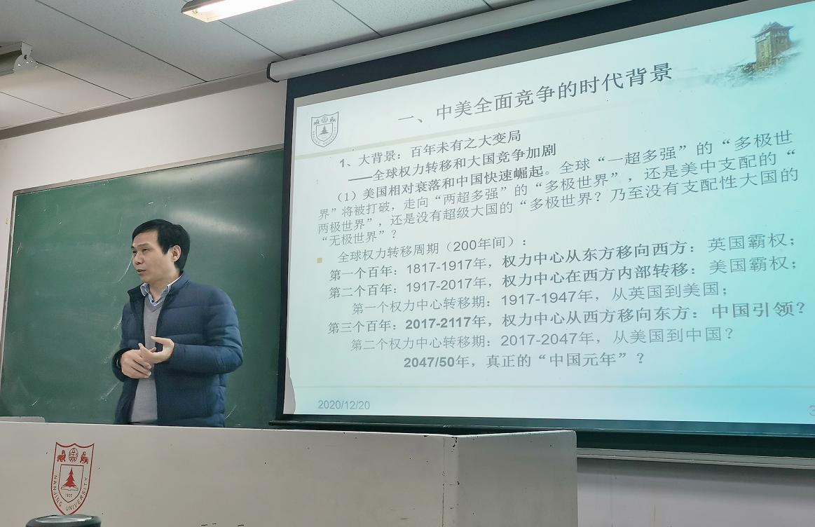历史之镜能够照亮未来。学习历史的意义,除了在于了解历史本身之外,更在于借鉴历史以关照现实。当今世界正经历百年未有之大变局,了解百年大变局的内涵与外延具有重要的现实意义。基于此,2020年12月20日晚,伟德1949官网、国际关系研究院郑先武教授《全球通史》课程围绕“百年未有之大变局——英美霸权转移1914-1947”的主题,在南大仙林校区仙II-304教室举办了一场线下讨论课程。